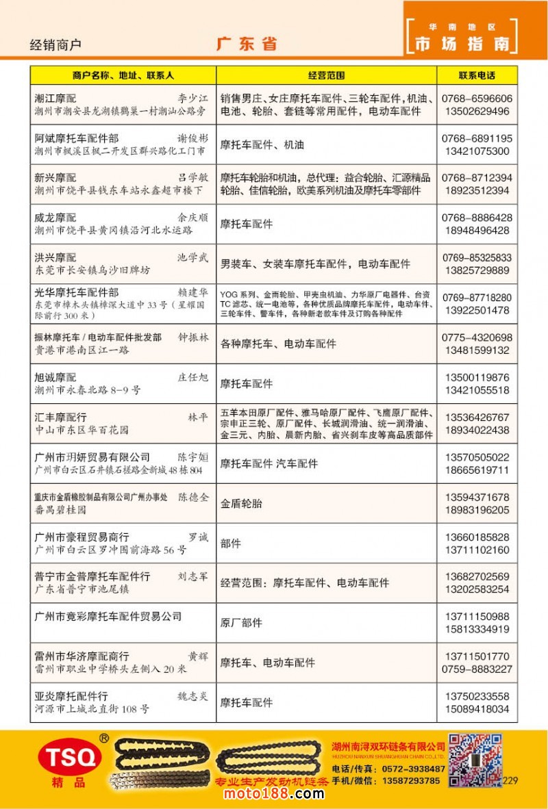 內(nèi)229 廣州市摩托車配件經(jīng)銷商戶