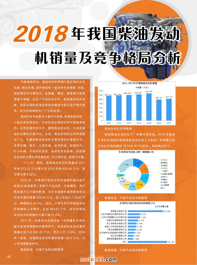 內40 2018年我國柴油發動機銷量及競爭格局分析