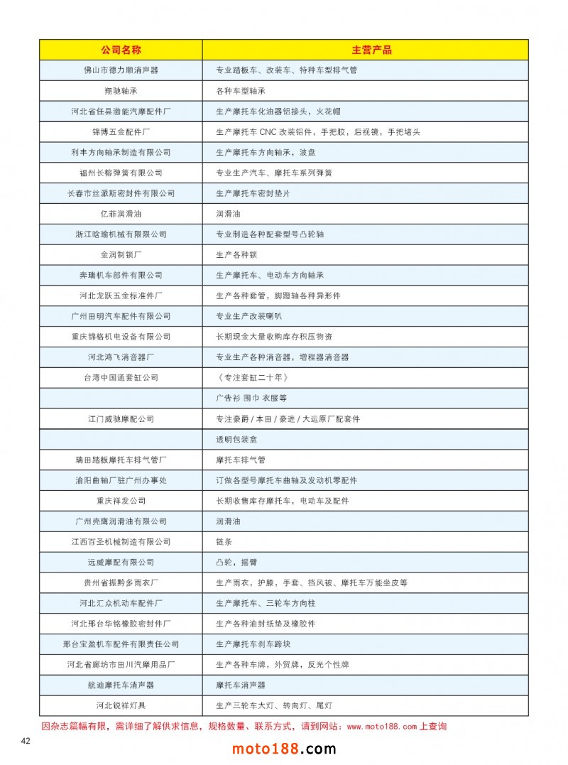 《摩托車與配件》(計劃變更為《電摩與配件》)不僅服務于摩配業,將重點增加電動車業(二、三、四輪)的信息服務;增加小型通機內容(涉及工、農、林、牧、副、漁、建等產業)信息服務,將其并入到摩托車部分的內容;