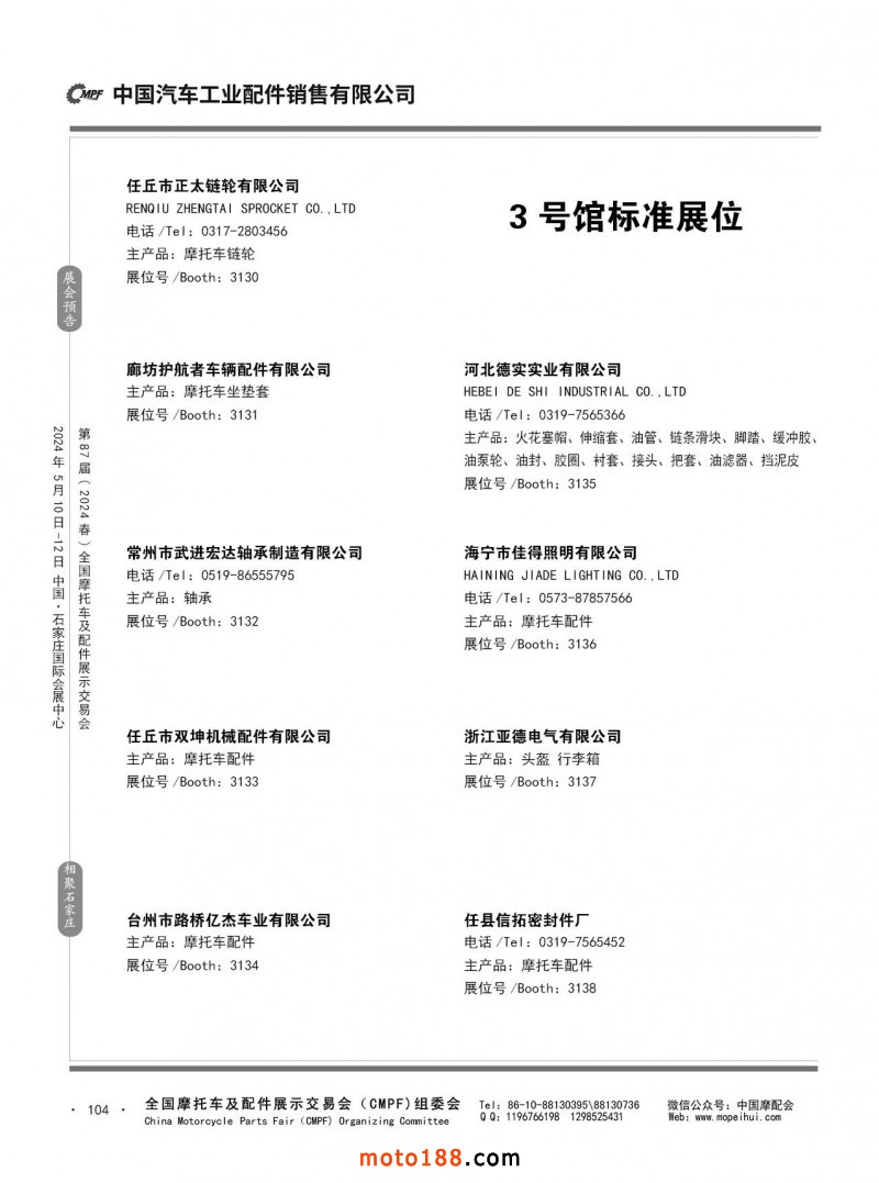 第86屆(2023秋)全國摩托車及配件展示交易會-廣州站參展企業信息
