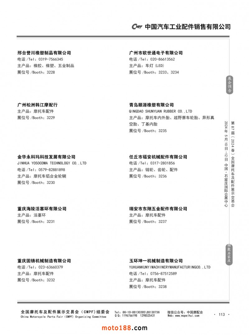 第86屆(2023秋)全國摩托車及配件展示交易會-廣州站參展企業信息