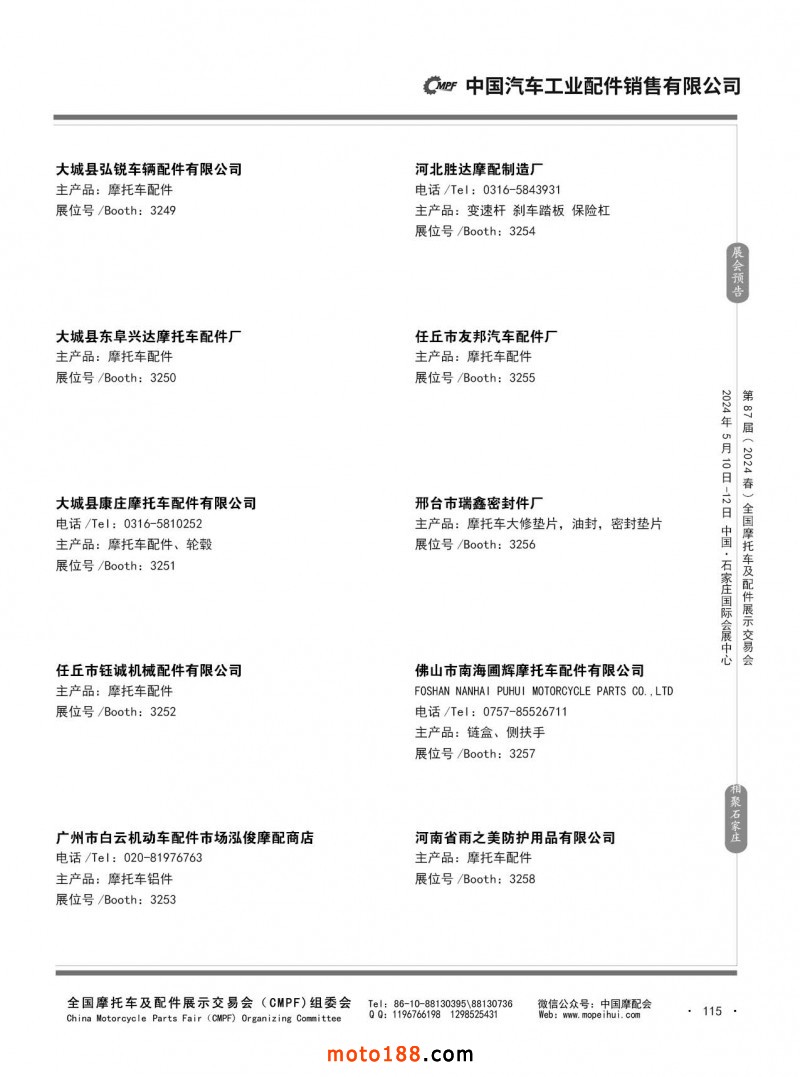 第86屆(2023秋)全國(guó)摩托車(chē)及配件展示交易會(huì)-廣州站參展企業(yè)信息