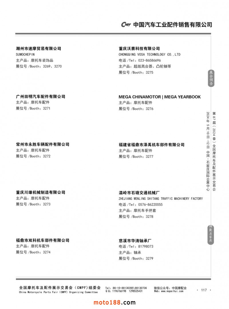 第86屆(2023秋)全國摩托車及配件展示交易會-廣州站參展企業(yè)信息