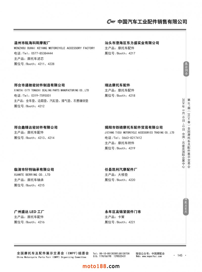 第86屆(2023秋)全國摩托車及配件展示交易會-廣州站參展企業信息