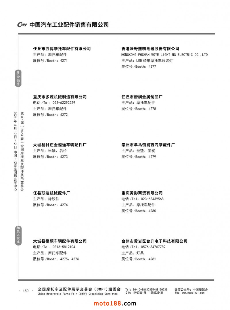 第86屆(2023秋)全國摩托車及配件展示交易會-廣州站參展企業信息