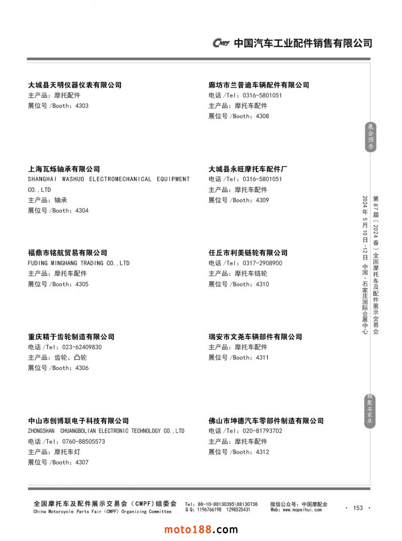 第86屆(2023秋)全國摩托車及配件展示交易會-廣州站參展企業信息