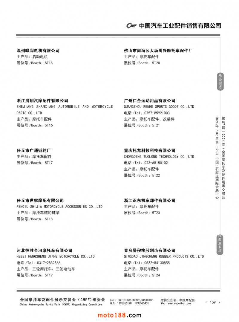 第86屆(2023秋)全國摩托車及配件展示交易會-廣州站參展企業(yè)信息