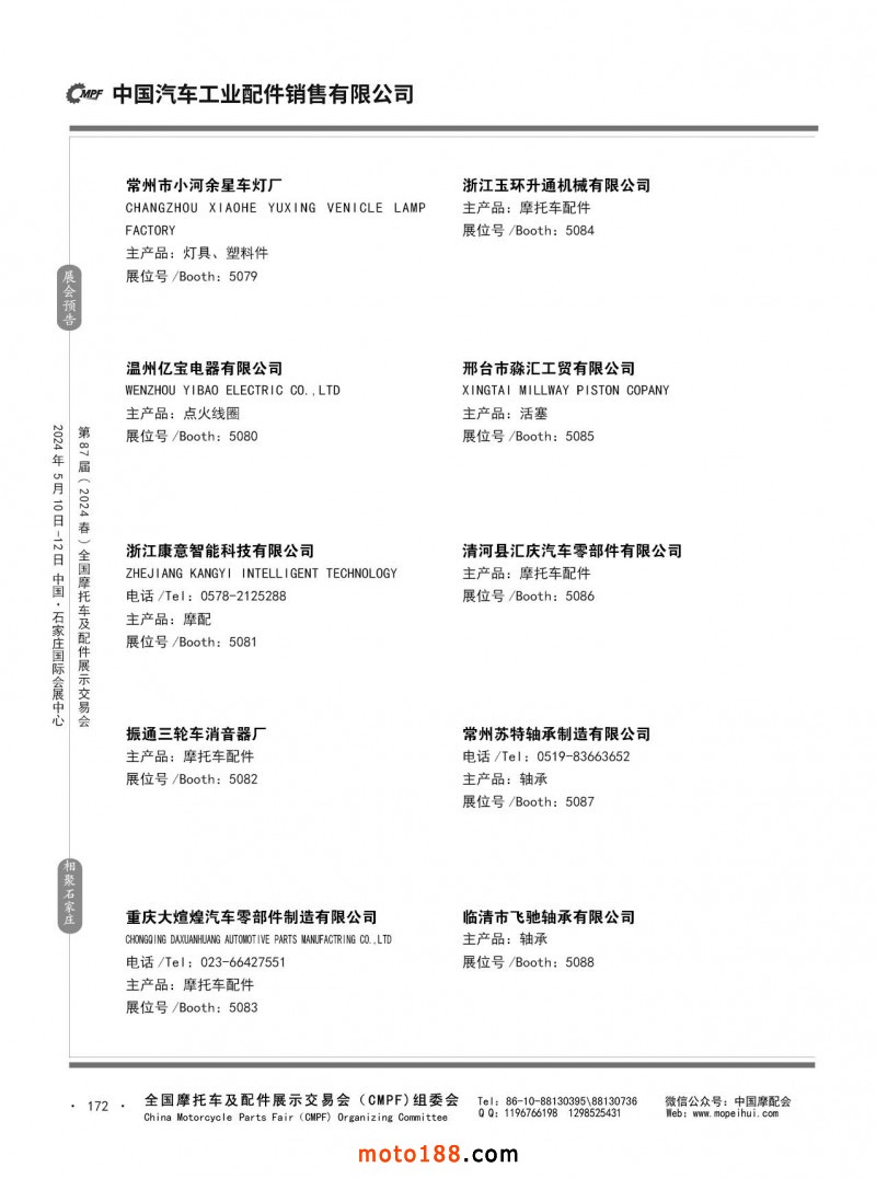 第86屆(2023秋)全國摩托車及配件展示交易會-廣州站參展企業信息