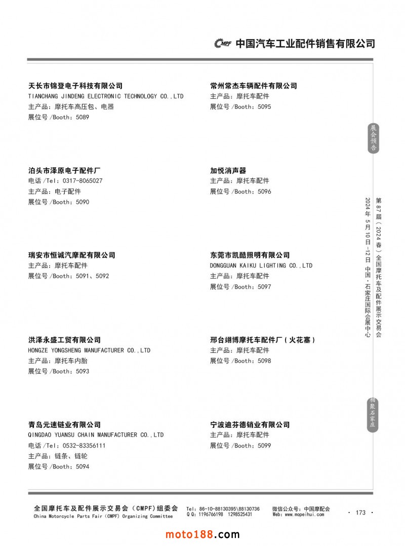 第86屆(2023秋)全國摩托車及配件展示交易會-廣州站參展企業信息