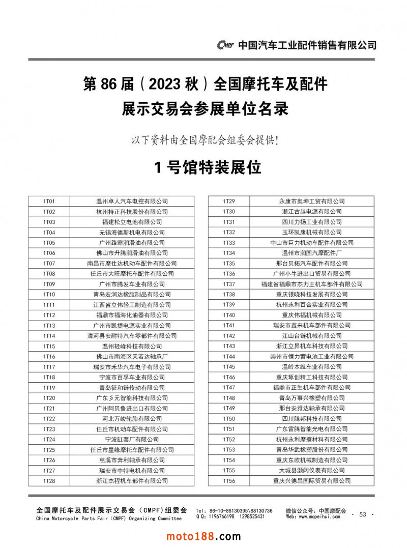 第86屆(2023秋)全國(guó)摩托車及配件展示交易會(huì)-廣州站參展單位名錄