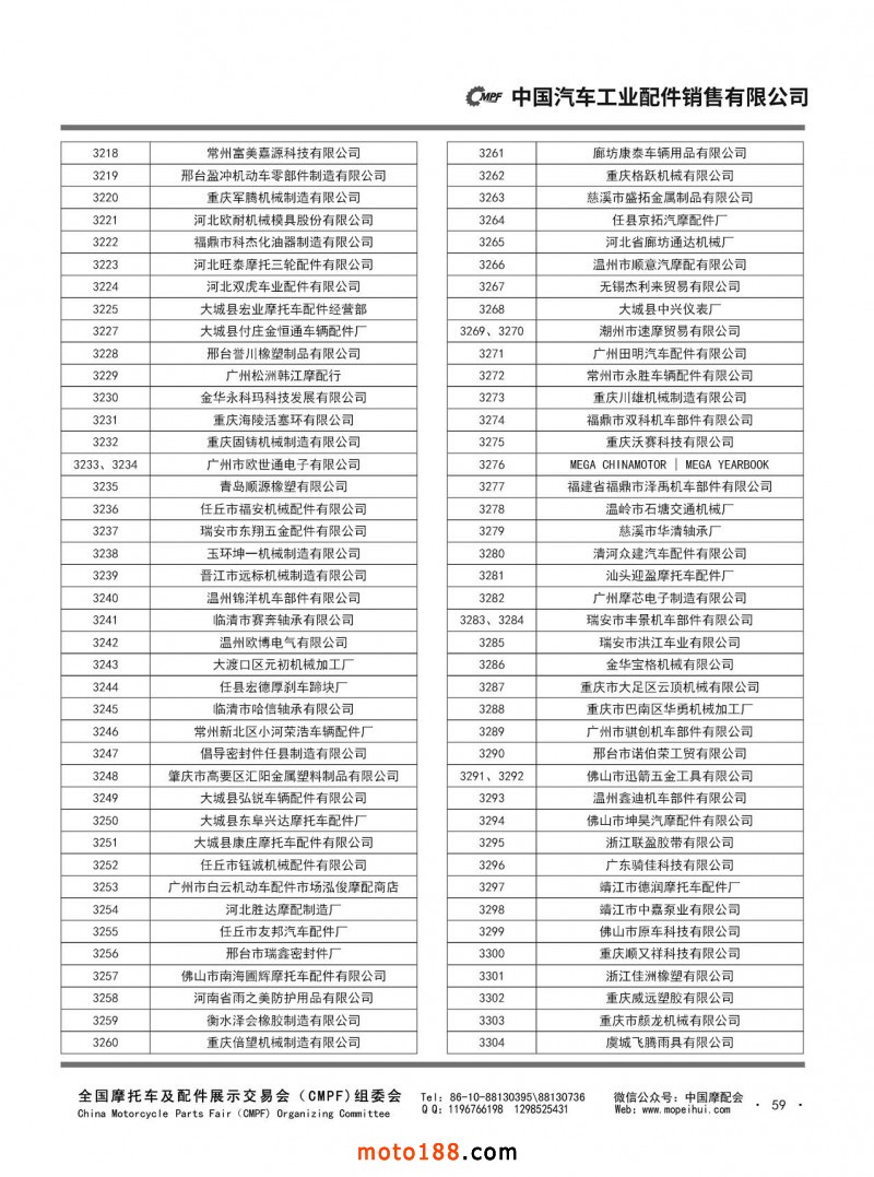 第86屆(2023秋)全國摩托車及配件展示交易會-廣州站參展單位名錄