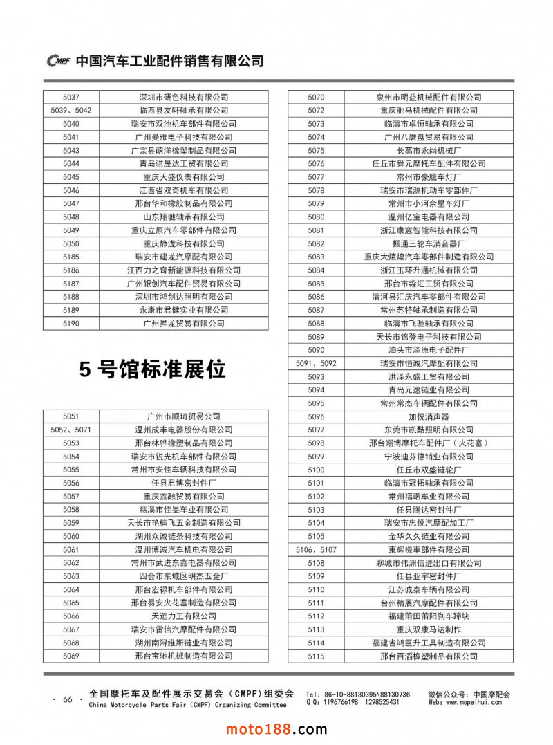 第86屆(2023秋)全國摩托車及配件展示交易會-廣州站參展單位名錄