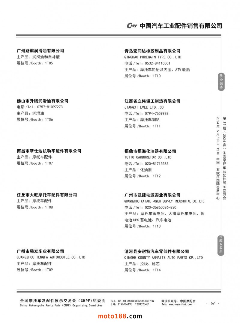 第86屆(2023秋)全國摩托車及配件展示交易會(huì)-廣州站參展企業(yè)信息