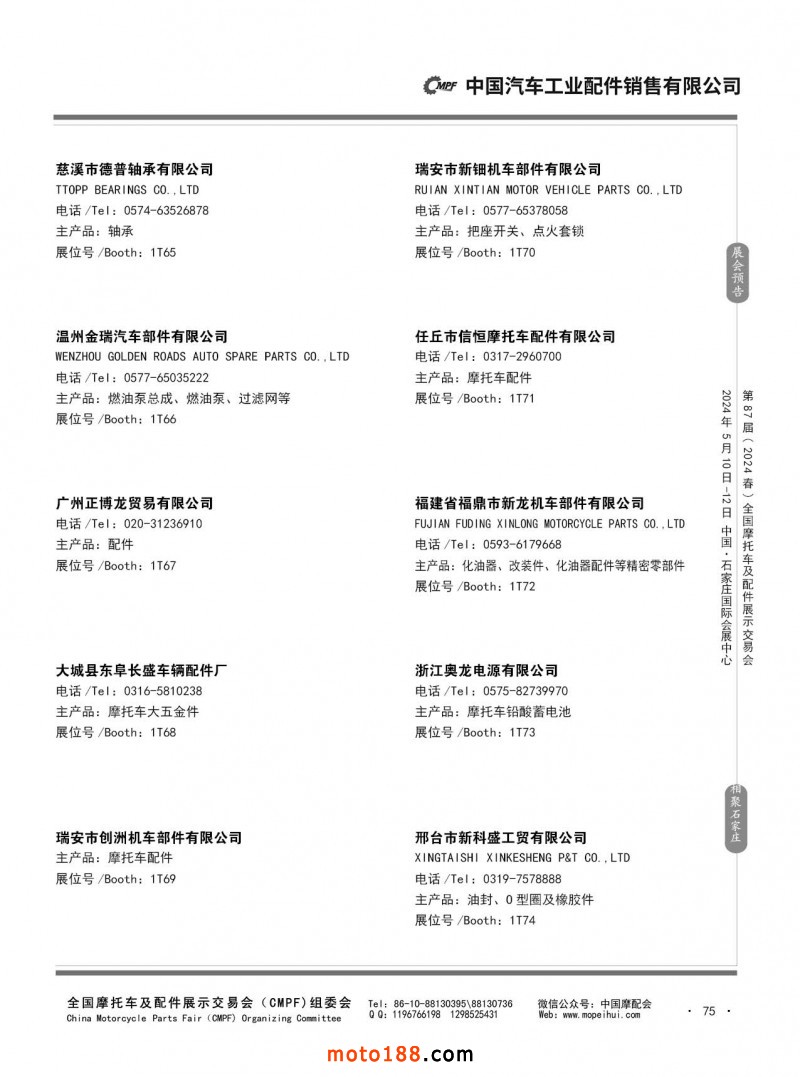 第86屆(2023秋)全國摩托車及配件展示交易會-廣州站參展企業信息
