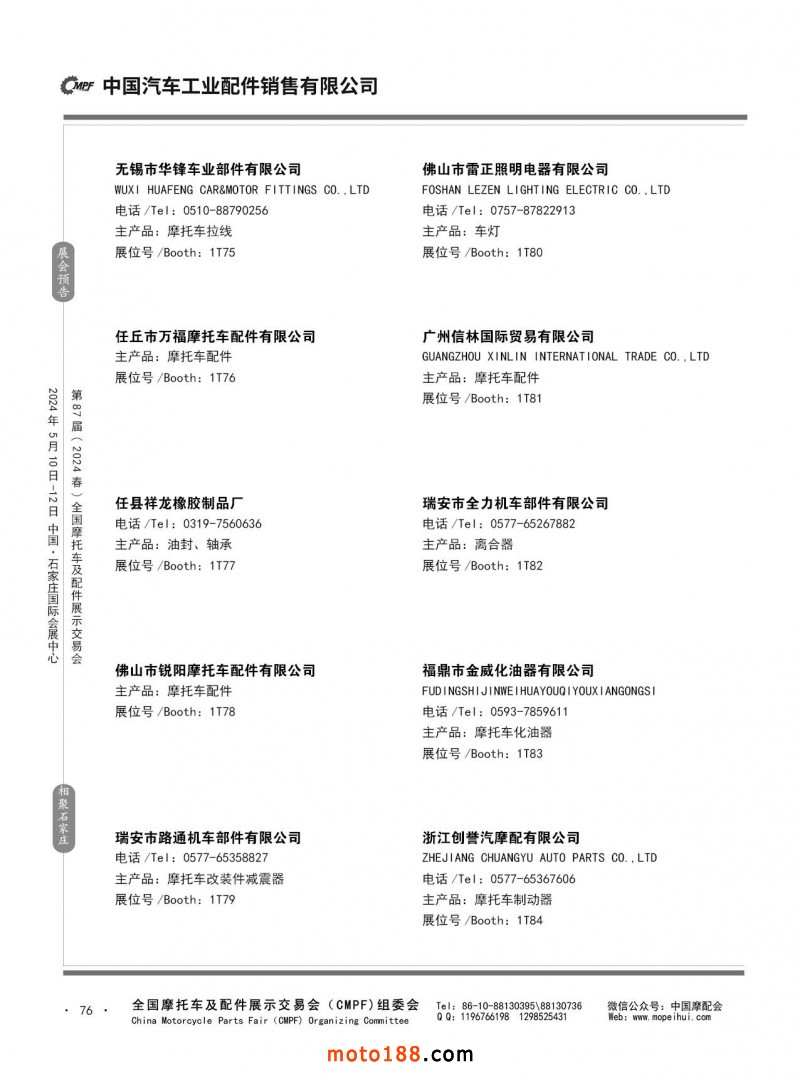 第86屆(2023秋)全國摩托車及配件展示交易會-廣州站參展企業信息