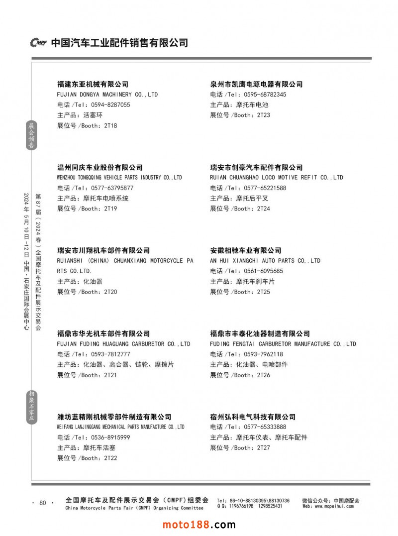 第86屆(2023秋)全國摩托車及配件展示交易會-廣州站參展企業信息