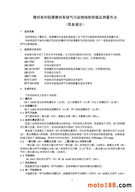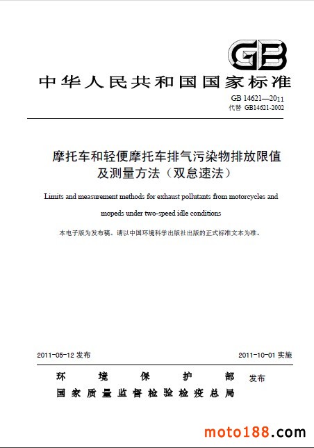 GB 14621-2011 摩托車和輕便摩托車排氣污染物排放限值及測量方法(雙怠速法)