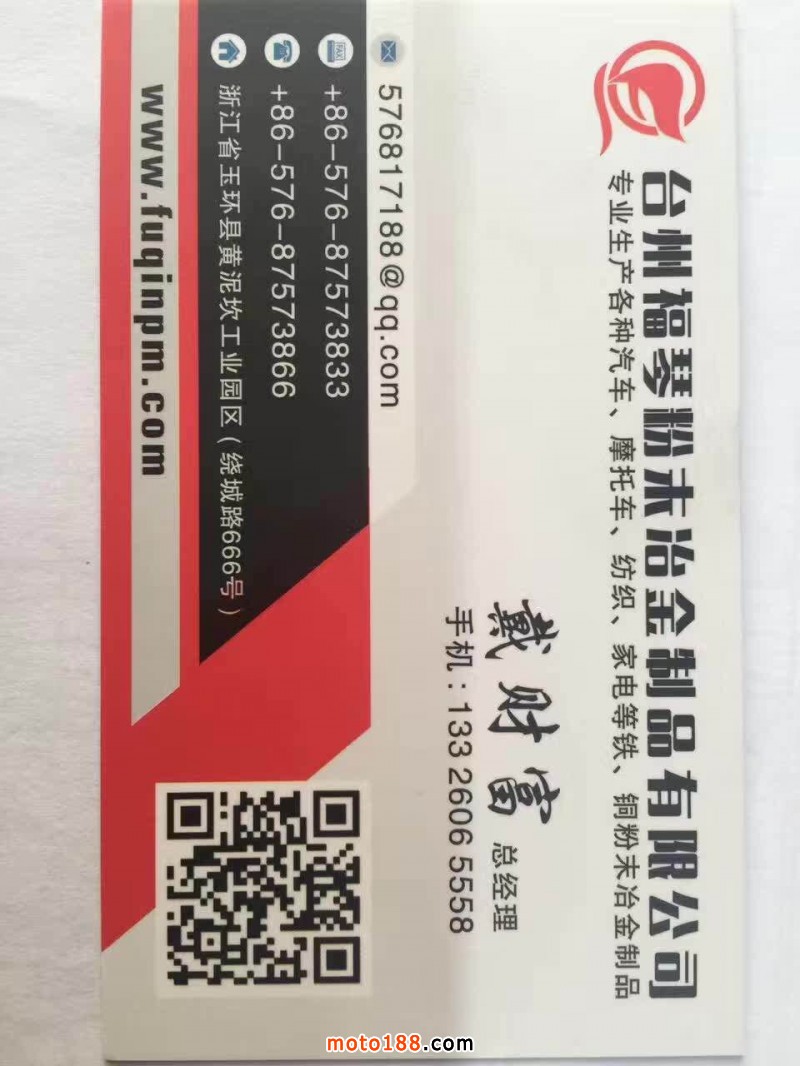 臺(tái)州福琴粉末冶金制品有限公司,本公司專(zhuān)業(yè)生產(chǎn)粉末冶金鐵、銅基制造汽車(chē)、摩托車(chē)、電動(dòng)工具等配件,熱烈歡迎各界朋友前來(lái)參觀、考察、洽談業(yè)務(wù)。聯(lián)系電話:13326065558,聯(lián)系人:戴先生