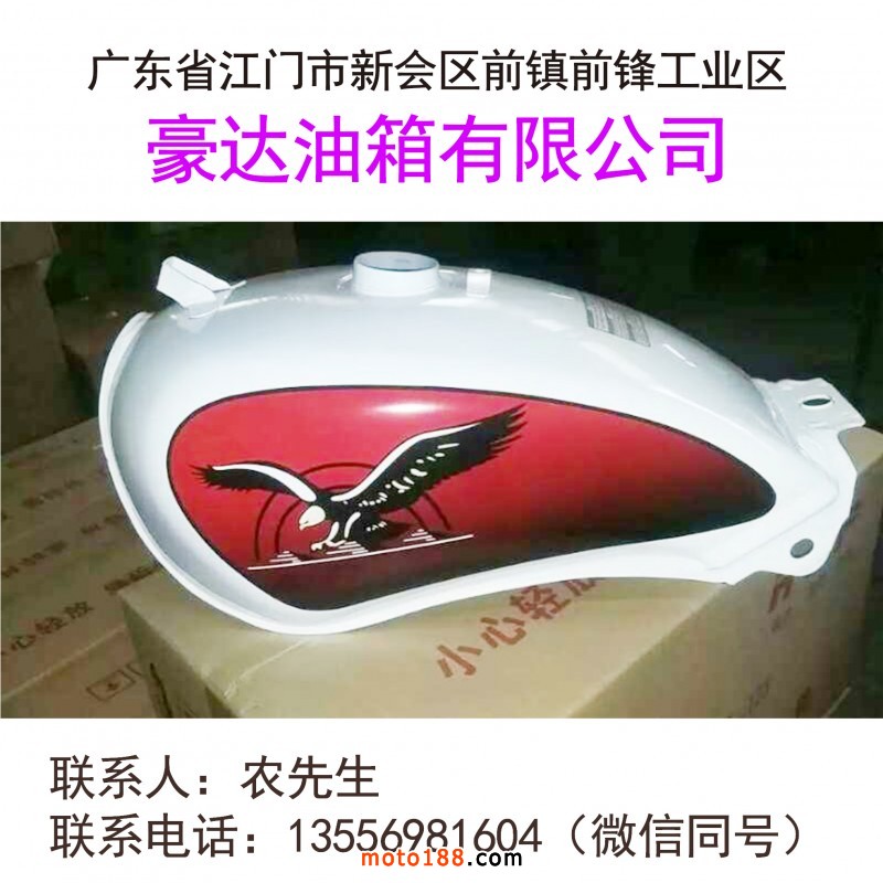 豪達油箱有限公司,本公司主要生產摩托車油箱、主要以貿易出口為主、出口產品銷往、非洲、哥倫比亞、伊朗、墨西哥、秘魯、委內瑞拉、埃及、主要有品種、喜冠、悅冠、AX100一代、AX100二代改型、BM150、CB1一銳彪、牧羊人、CG一代、二代、三代、八代、九代、哈雷油箱、復古油箱、MTR、復古小嘉陵、大越野、輕騎復古歪口太子油箱及各種油箱。地址: