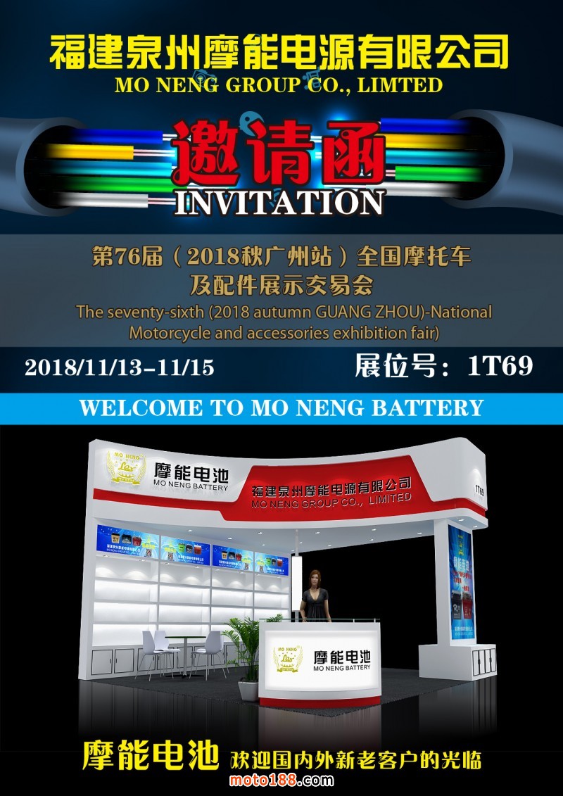 2018年11月13-15日廣州全摩會,摩能電池歡迎國內(nèi)外新老客戶的光臨!展位號:1T69
