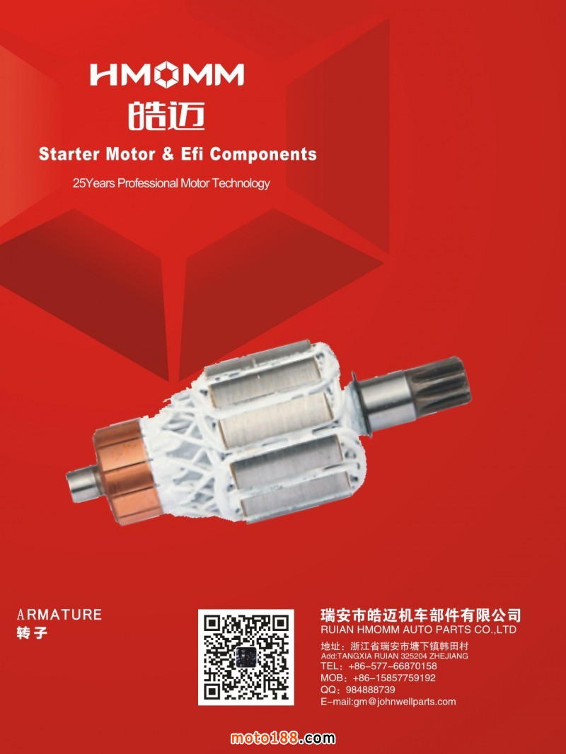 主要有摩托車起動電機、割草機電機、燃油泵、燃油泵總成、轉子、定子等。