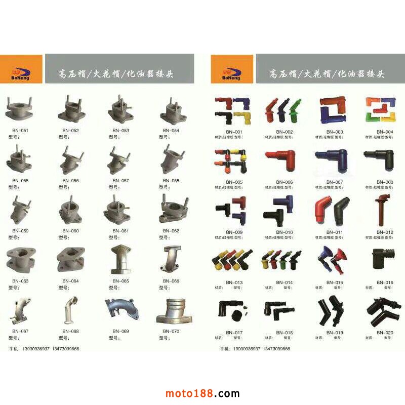 專業(yè)生產摩托車化油器鋁接頭,和火花帽(高壓帽)。火花帽有70. 125. GY6. 大沙,鉆豹,駱駝,防水型。 鋁接頭有: CG150型,200型,老本田,錢江,錢江150型,也可來樣定做,歡迎來電咨詢!