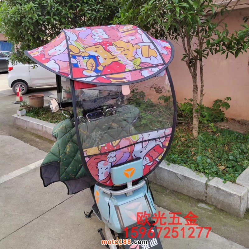 【歐光五金有限公司】專業(yè)生產(chǎn)電瓶車/摩托車雨棚,遮陽擋雨、四季通用,牢固、方便、耐用、安全!聯(lián)系方式:15967251277