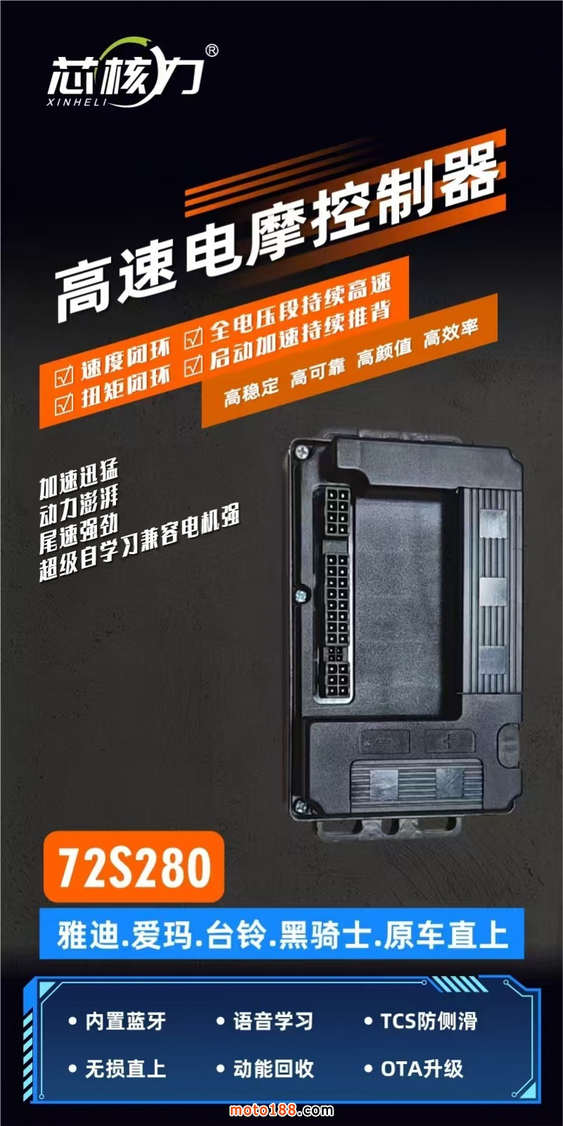 科杰電子新品上市:內40A 50A內置藍牙五合一,兼容休閑三輪車,有黑色款,透明款。九號專用,280A~450A原車直上,保留原車功能。25款AE4極核,原車直上,保留原車功能,雅迪,臺鈴,愛瑪,黑騎士,內置藍牙,功能自由調節,支持OTA手機升級。無損直上,保留原車功能,性能穩定,品質保證,支持458通訊協議,72S200,72S280,72S300,72S450可選擇!18949777722