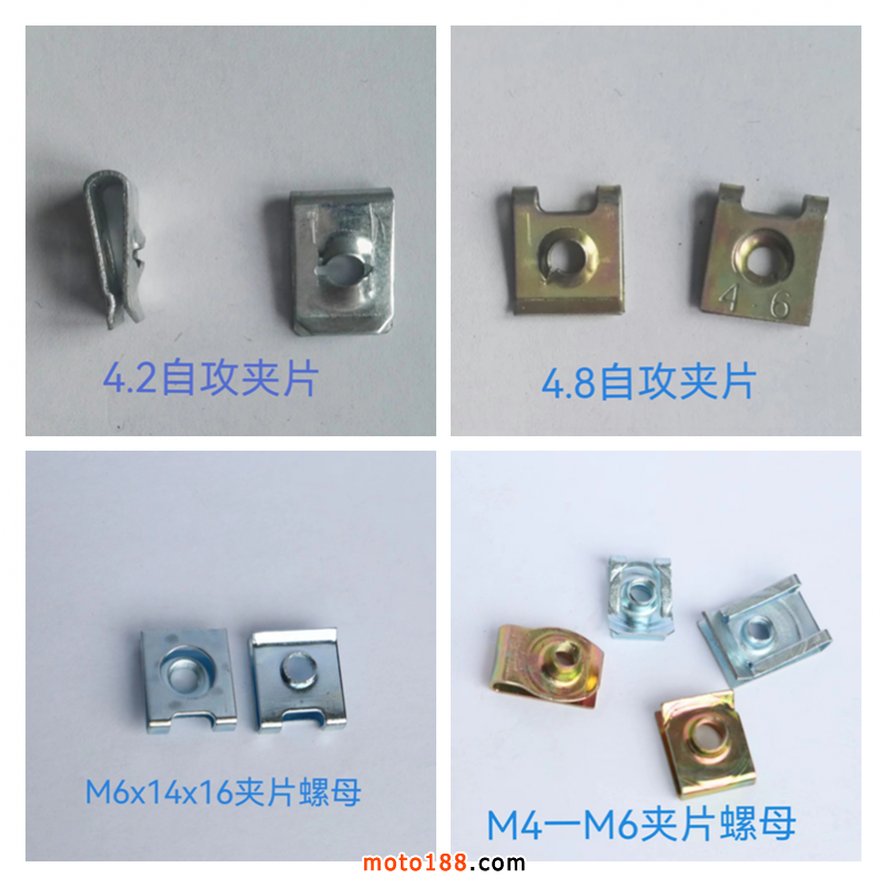 汽車、摩托車、電動車自攻夾片、夾片螺母、牌照螺母、自攻螺絲等