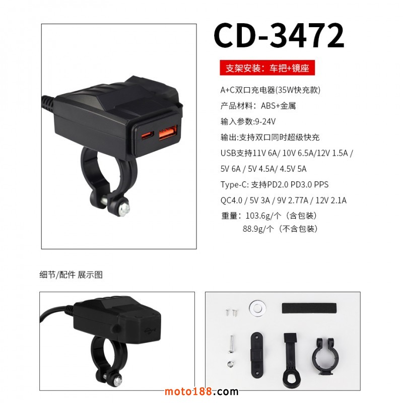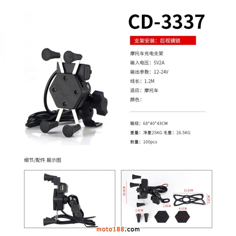 摩托車、電動車、自行車、手機USB充電器和充電手機支架