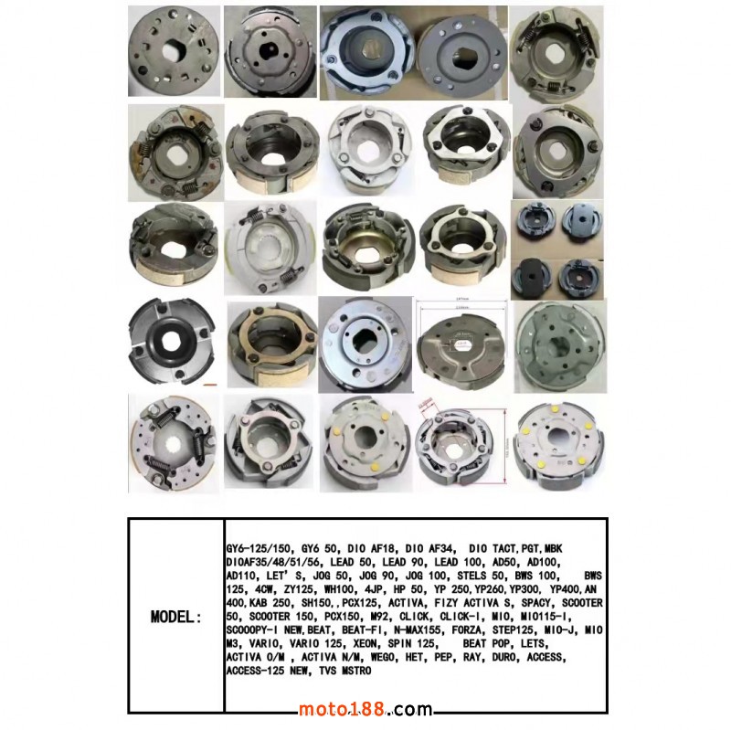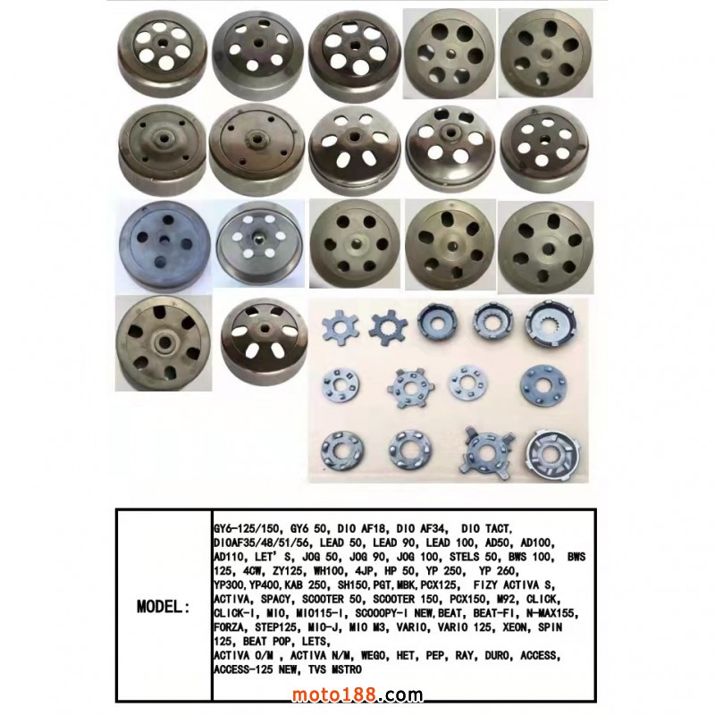 專業生產摩托車發動機配件,離合器、從動輪、離合蹄塊。
