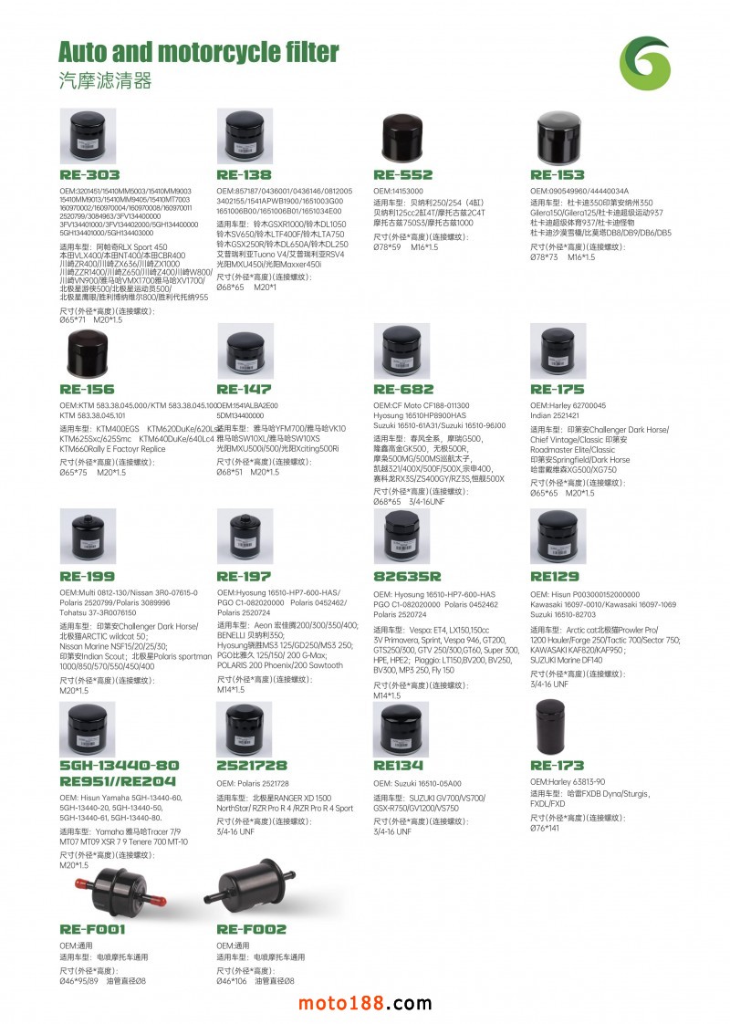 江西瑞爾濾清器有限公司集開發(fā),制造和銷售于一體,是一家專業(yè)生產(chǎn)摩托車濾清器的現(xiàn)代化企業(yè)。歡迎海內(nèi)外朋友來電咨詢,洽談合作!聯(lián)系電話:13353318438(微信同號)