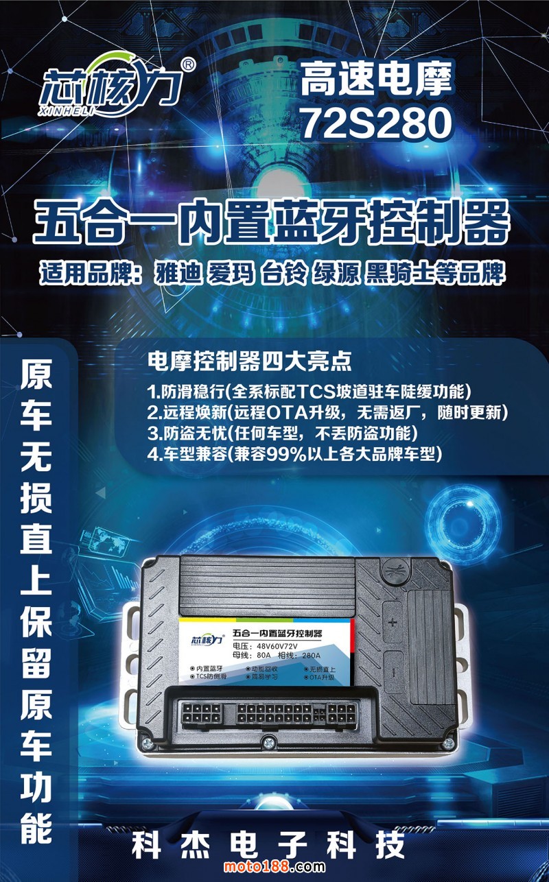 天長市科杰電子新品上市:40A 50A,80A內(nèi)置藍(lán)牙五合一,兼容休閑三輪車,有黑色款,透明款。九號(hào)專用,280A~450A原車直上,保留原車功能。25款A(yù)E4極核,原車直上,保留原車功能,雅迪,臺(tái)鈴,愛瑪,黑騎士,內(nèi)置藍(lán)牙,功能自由調(diào)節(jié),支持OTA手機(jī)升級(jí)。無損直上,保留原車功能,性能穩(wěn)定,品質(zhì)保證,支持458通訊協(xié)議,72S200,72S280,72S300,72S450可選擇!18949777722