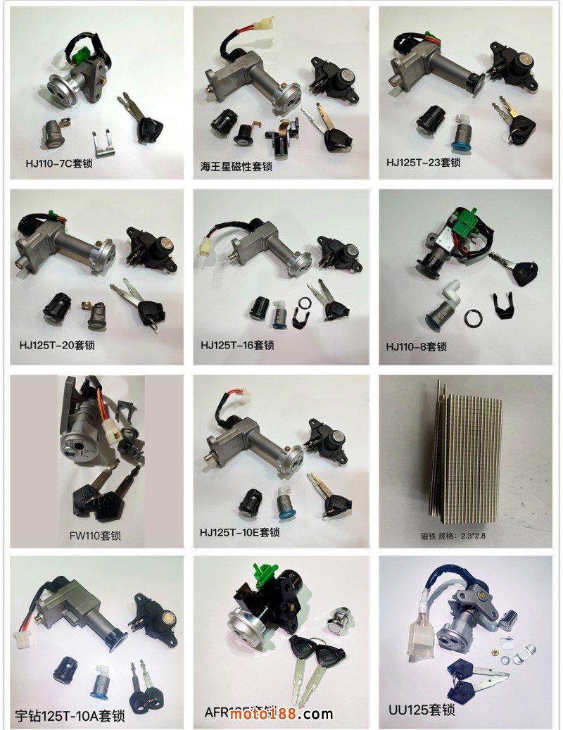 【瑞安市安佳汽摩配件廠】專業(yè)生產(chǎn)摩托車,電動(dòng)車套鎖、磁鐵。銷售熱線:13806809816(微信同號(hào))