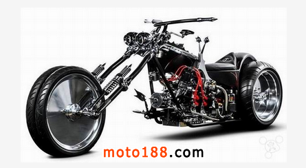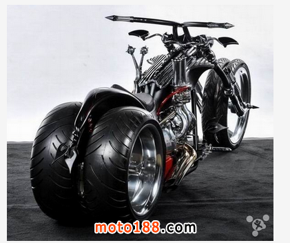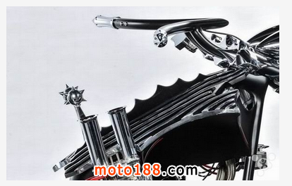 Twisted Evil摩托車采用的是霸氣的四輪設(shè)計(jì),碩大的雙后輪給人一種十分強(qiáng)悍的感覺。車身整體采用的是黑銀相間的配色,大量銳利的裝飾顯得侵略性十足。從這點(diǎn)來說,Twisted Evil確實(shí)蠻邪惡的。