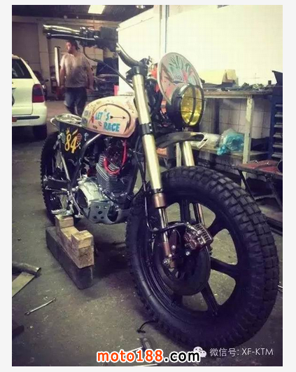 手工改裝廠Dream Wheels 幾年前開始著手改裝Honda CLR125 ,因?yàn)镃LR125 成本低廉又有著可靠的引擎,非常適合穿梭在街頭,是一個非常好的改裝素材。而今天這臺CITYFLY原本只是臺pizza車 ,經(jīng)過Dream Wheels巧手,換上 RMX50前叉、復(fù)古手把與開關(guān)、復(fù)古圓燈、LED尾燈、XS400 18寸前鋁框 后面搭配鋼絲框、油箱彩繪、等.... 最后再加上那個畫龍點(diǎn)睛的滑板架,街頭復(fù)古風(fēng)一拜!