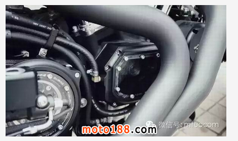 引擎外觀改裝了凸顯肌肉感的亮黑CNC切削缸蓋;而離合器蓋、前皮帶輪蓋、引擎箱體蓋則統一使用了透視套件,通過高強度聚碳酸酯制成的玻璃蓋可直接觀察到其內部工作狀態。