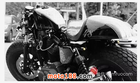 哈雷上海浦西店改裝設計師Jeffrey的嘔心之作,由原型車Sportster 48為藍本改裝成的Café racer 48,改裝后的整體風格干凈利落,簡約復古,實屬一臺不可多得的哈雷臻品。