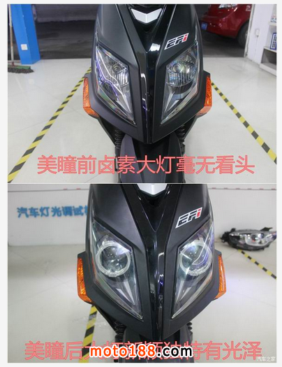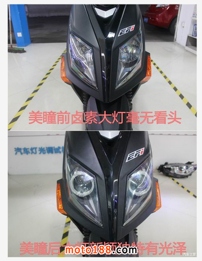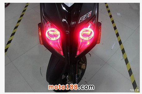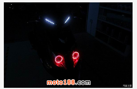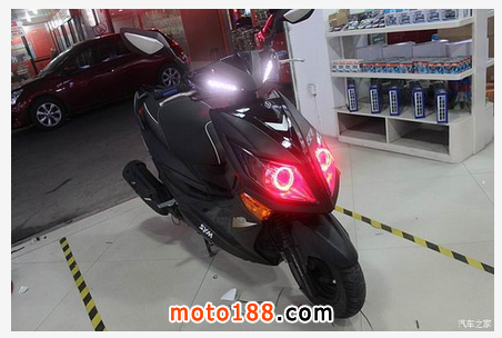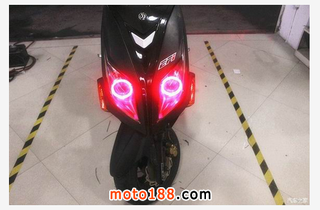 三陽 JetPower 俗稱三陽小鋼炮,車前大燈有著鷹嘴的味道新增添的誘惑紅天使眼使得整個大燈更加完美、新穎、獨特在夜行時顏值暴漲,魅力四射改裝后的小鋼炮放大了瞳孔更適合在夜間狂野飆車,燈光鋪路效果非常棒