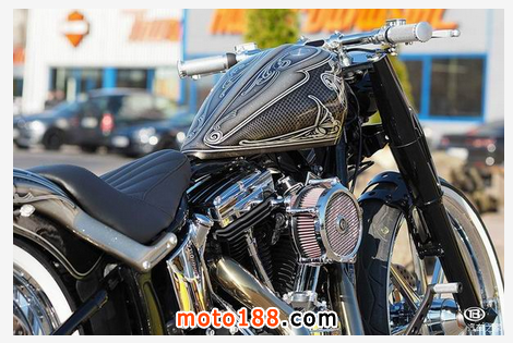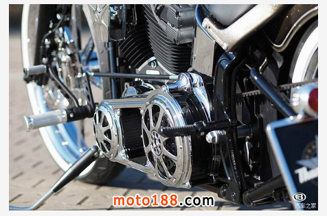 這是德國高端摩托車定制公司Thunderbike為Custom Chrome Europe(簡稱CCE)專門定制的2015哈雷-戴維森軟尾司令項目,其用到的改裝件全部為CCE的產品。CCE為一家專門為哈雷-戴維森和其他定制摩托車提供配套零部件的平臺,零配件的種類高達25000件以上,像BSL、Burly、Performance Machine、Ohlins、S&S、Rev Tech、Kuryakyn及Kustom Tech等知名的哈雷零部件品牌都是進駐CCE的合作商。