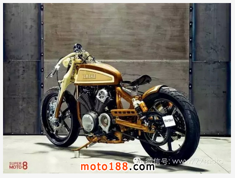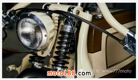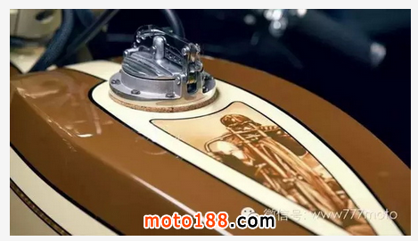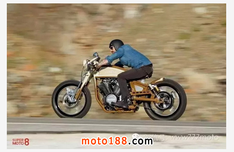 為了呈現1910-20年代美國賽車的風格,可以說是改到面目全非完全看不出由VX950而來!特殊的前避震系統與斜把、復古的單座皮椅、細致的金屬配件、米色 咖啡的車身配色,散發10-20年濃濃的復古味