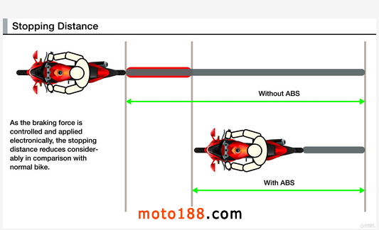事實勝于雄辯,以下事實說明在雙輪機車中安裝ABS系統的成效: