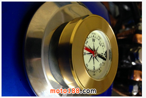 來自印度孟買的定制公司 R & G 作品 Rising Angel “ 天使瑞星 ”,以一部當?shù)厣a(chǎn)的 Yamaha FZ16 為基礎(chǔ)制作而成,但除了發(fā)動機沒有重大的變化之外,車體的各個部分皆已經(jīng) “ 面目全非 ”:采用了一個 “ 咖啡 ” 的外觀整體造型,梁架式的前懸掛,配有指南針的油箱蓋,19 英寸直徑的鋼線前輪框。尤其耀眼的是全車多處采用了黃銅為主材料、經(jīng)過精加工而成的組件,制造出一種金壁輝煌的感覺,或許這就是我們對印度社會崇尚某些貴金屬的傳統(tǒng)印象罷了。