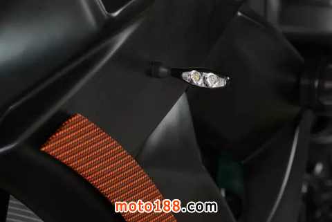 加滿油才195公斤,理想條件下最高車速能超過320km/h。為此,PUIG的風擋還專門放在風洞里吹過,絕非路邊攤隨便揀來的。所謂理想條件包括把頭埋在風擋的后面,這個位置要看到后視鏡可是無比艱難,Warm Up于是在油箱上設(shè)了一片WAECO顯示器——用攝像頭取代后視鏡還能進一步降低風阻。類似的小心眼還包括Kellermann的Micro 1000 DF后燈組,不亮的時候幾乎注意不到它的存在。頭燈倒很容易引起注意,遠近光現(xiàn)在換成氙氣獨眼,下面還墊了一排LED日間燈,非常明亮。