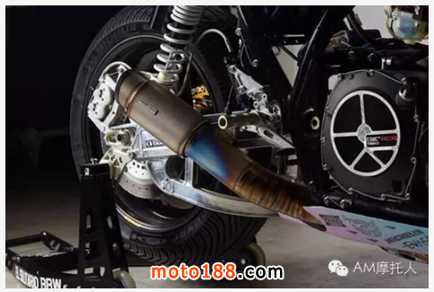 車輛改裝的重點放在了性能的提升和造型的設計上。因此,除了車架、油箱和車把之外,其他的部件全部為改裝件,這就導致車重驟降了25%,從245kg降到了183kg。同時,通過加大發動機進氣量,提高壓縮比(從9.7:1提高到10.7:1),更換鈦合金的連桿和缸頭等一些列改裝,使得馬力暴增到了148hp。大馬力低配重,引擎輸出的功率比和市面上的運動型賽車絕對有一拼,介于BMW S1000 RR 和Ducati 1299 Panigale之間。