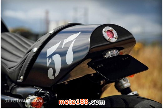 座椅是重新使用硬泡沫手工雕出來的,給人的第一感覺是騎馬的鞍子,這也增強了整車的咖啡復古感覺。在車尾,技師專門從新設計了尾燈,非常個性。