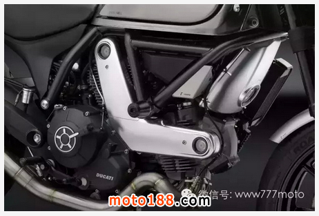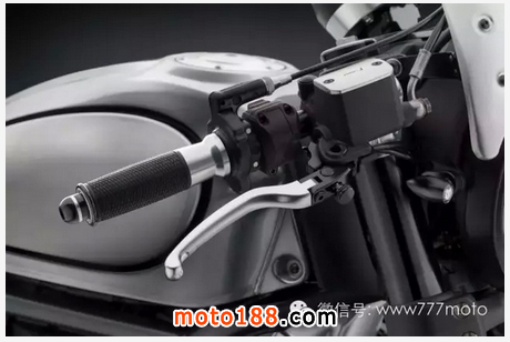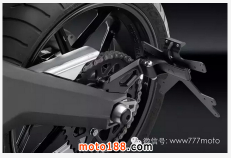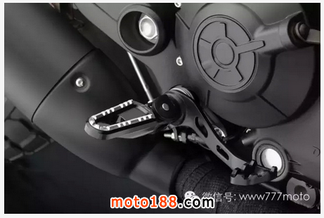 全身素黑的配色隱約在油箱與前土除上可以看到黃色的拉線,讓整體不會過于單調,油箱與前土除顏色以亮灰做為搭配,在這么低調的配色底下,還是能發現許多精美的細節,不同的材質之間互相交錯的美感,讓人不禁贊嘆,在這么素的配色下還能擁有這么多的層次感,相當不容易!