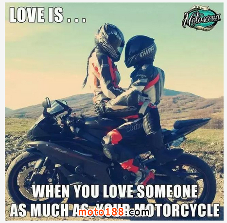 你們要的最后一條來了,是不是很對!如果有個女人不與你討論哪件衣服好看,而是愿意與你討論什么懸掛好使什么頭盔更加的漂亮,那我只能說兄弟!你中大獎了!如果這個姑娘還不嫌棄你騎摩托車反而很愿意接受他,愿意成為你的后座。