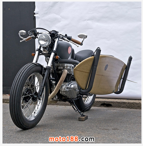這款摩托車并不算是強壯肌肉型,它是為沖浪人群專門設計的,澳大利亞的陽光沙灘才是它的終點。它的外形在描述著浪花,也是簡潔大方的代名詞,還可以定制貼心的沖浪板支架。深紋路輪胎減震性能良好, deus ex-machina 的設計師們也用一個循環式汽化器代替了車上所有的空氣通風系統。