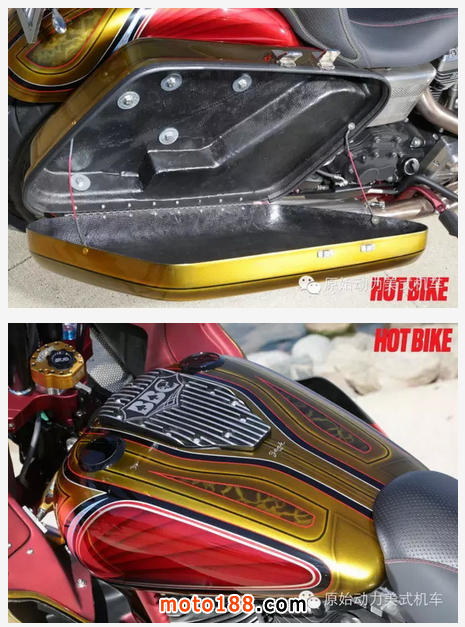為了提升性能,發(fā)動(dòng)機(jī)用上了S&S的T143,最大馬力可達(dá)162匹,還用了Baker的7速變速系統(tǒng)。改裝后的車性能非常卓越,曾經(jīng)創(chuàng)造了10天3500多公里的拉力過程中零故障的記錄,而且中途多次將時(shí)速拉到250碼以上,可見其動(dòng)力之強(qiáng)勁,性能之可靠。